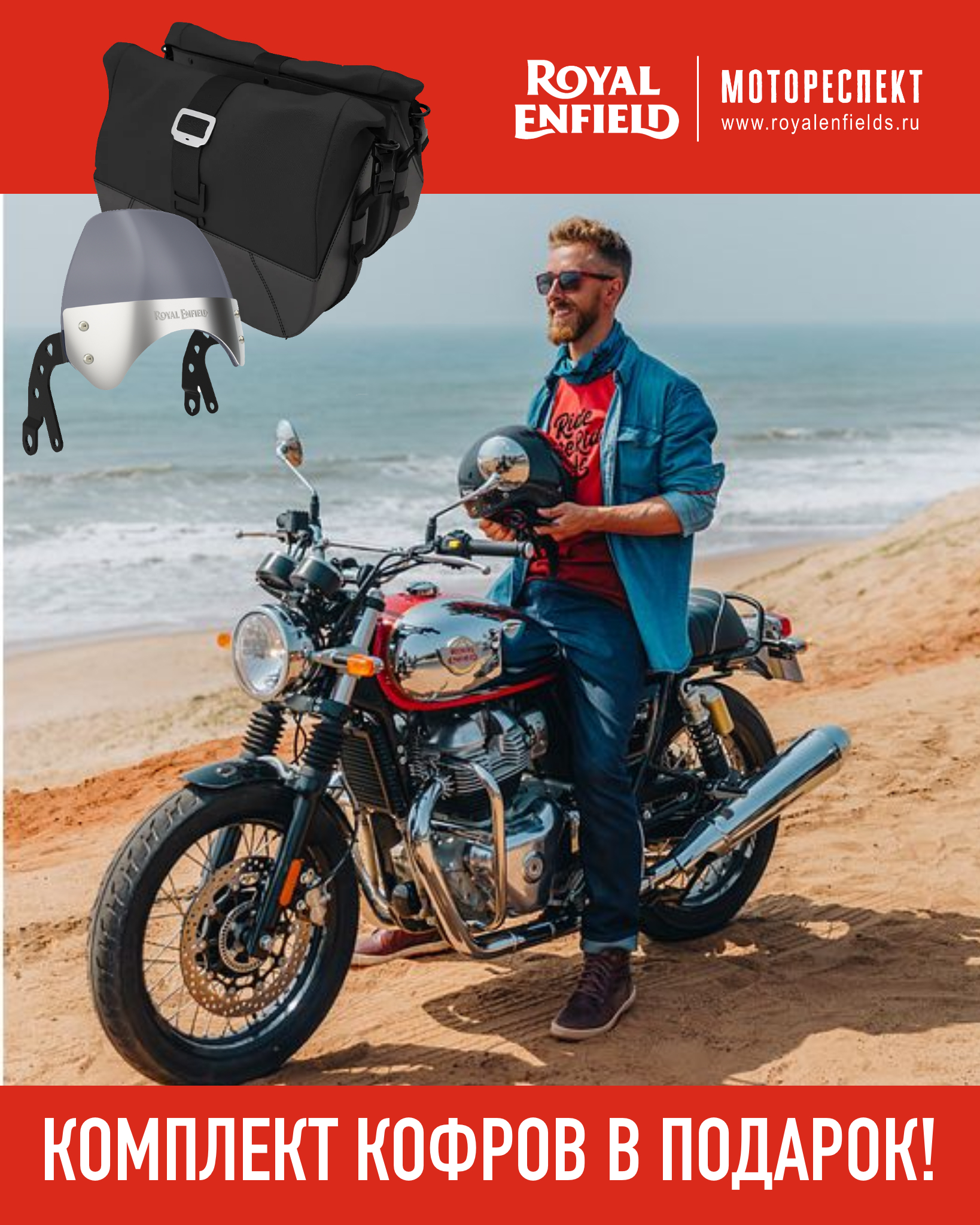 При покупке нового мотоцикла Interceptor 2024 года до конца октября - боковые кофры с крепежом и короткий ветровой щиток тонированный с крепежом в подарок!